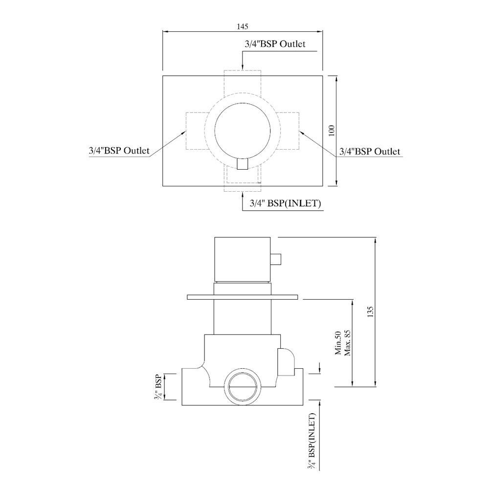 4-Way Diverter (Consisting of Concealed Body & Wall Flange) for Multiple Shower Working with one Shut-off Position &3-Outlets In Round Handle (Recommended For Use with Item FLR-5679) Also available ALD-287S In Square Handle (Recommended for use with Item KUB-35679)
