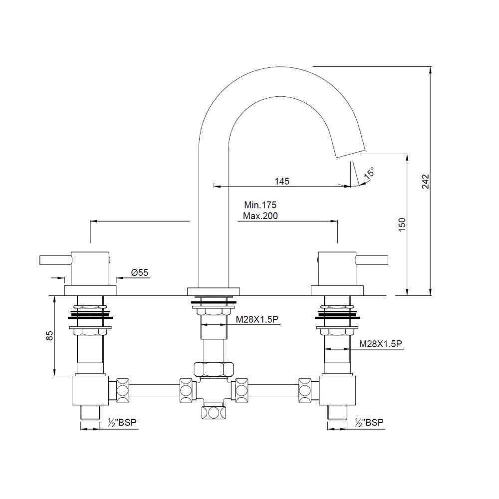 Bath Tub Filler consisting of2 Control Cocks and one Spout, 20mm Cartridge Size