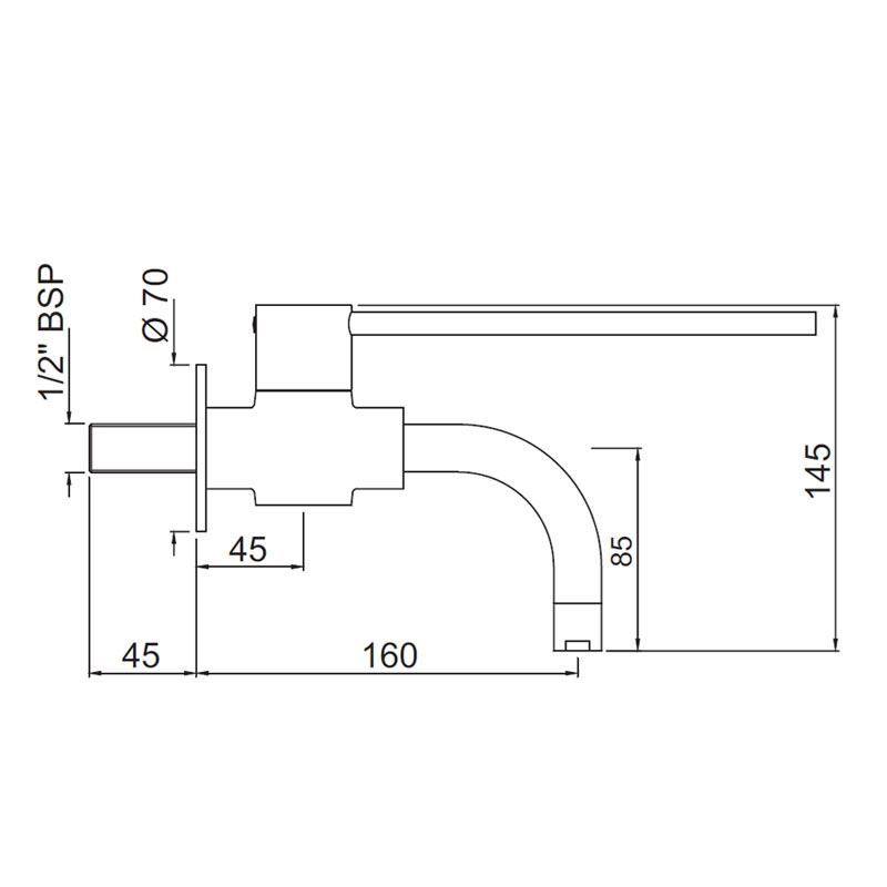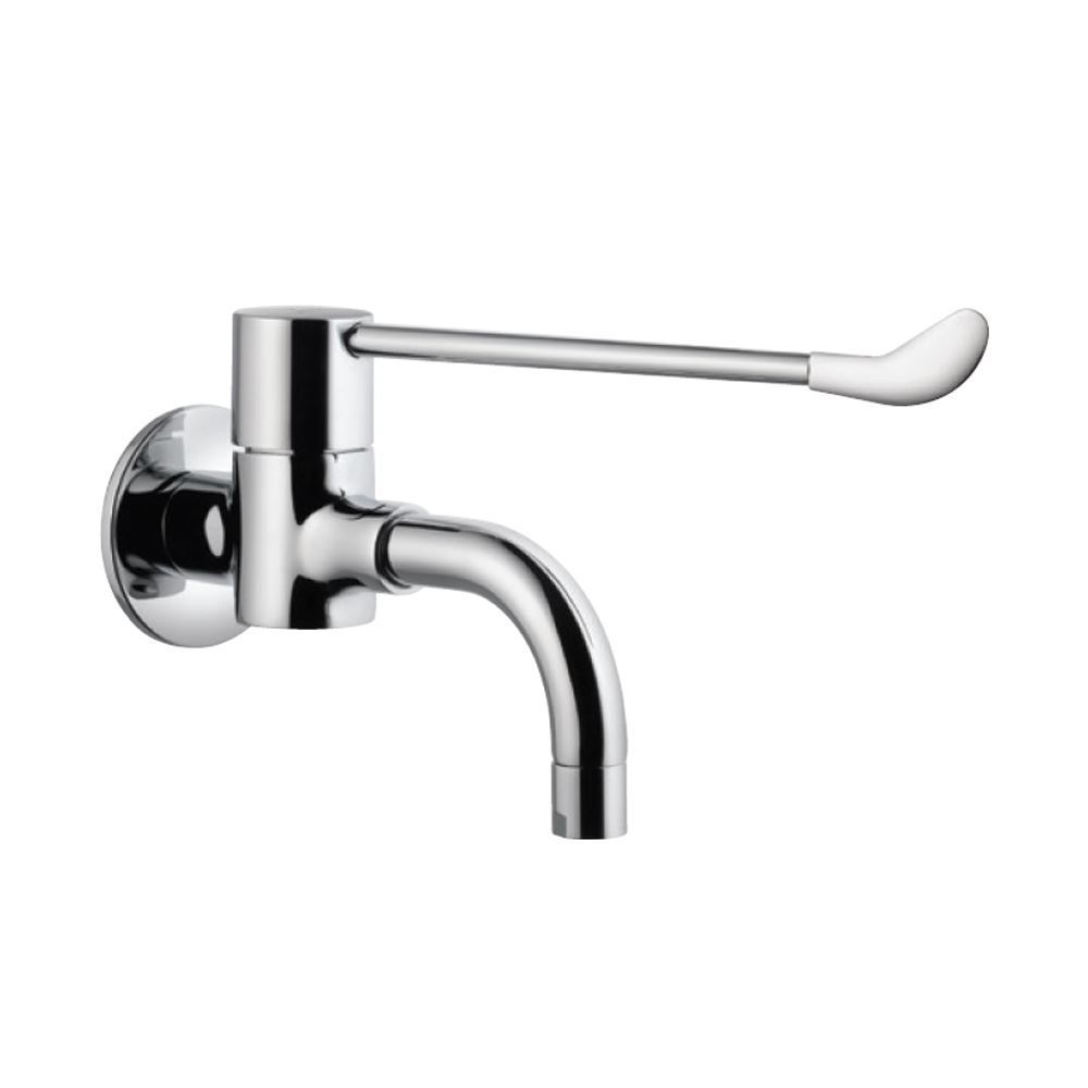 Florentine Bib Cock with Extended Lever Handle and Wall Flange