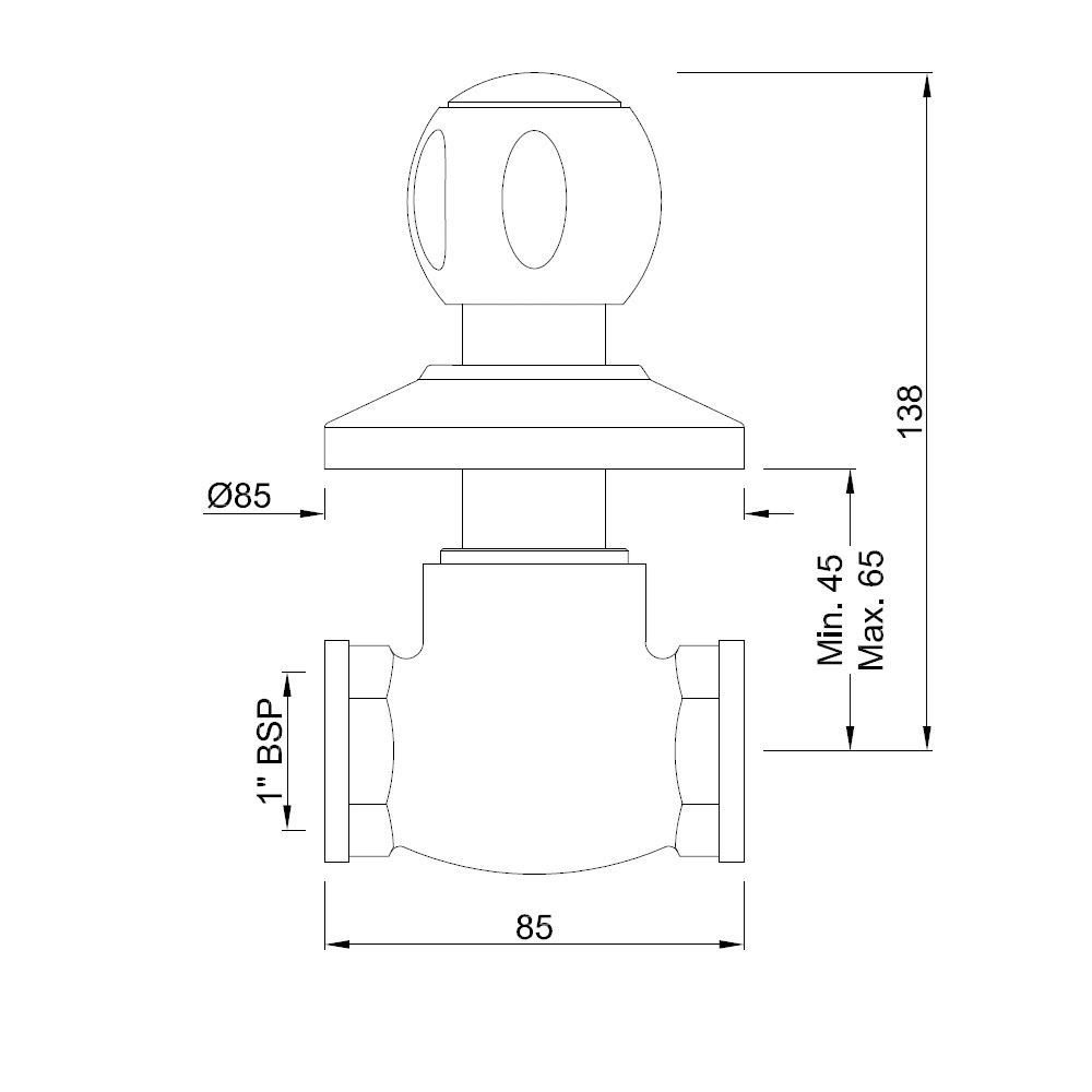 Flush Cock with Wall Flange 25mm (Ceramic Disc Cartridge) with Plain Knob