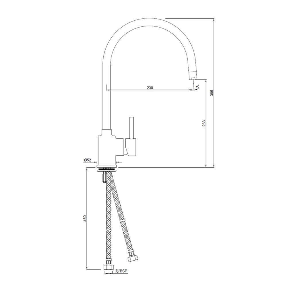 Side Single Lever Sink Mixer with Swinging Spout (Table Mounted) with 450mm Long Braided Hoses