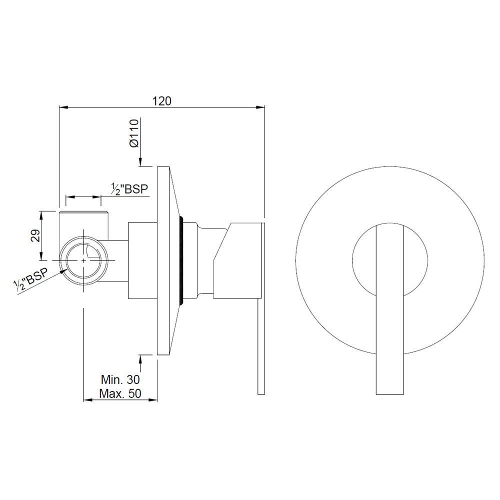 Single Lever Concealed Deusch Mixer with Provision for Connection to Overhead Shower only