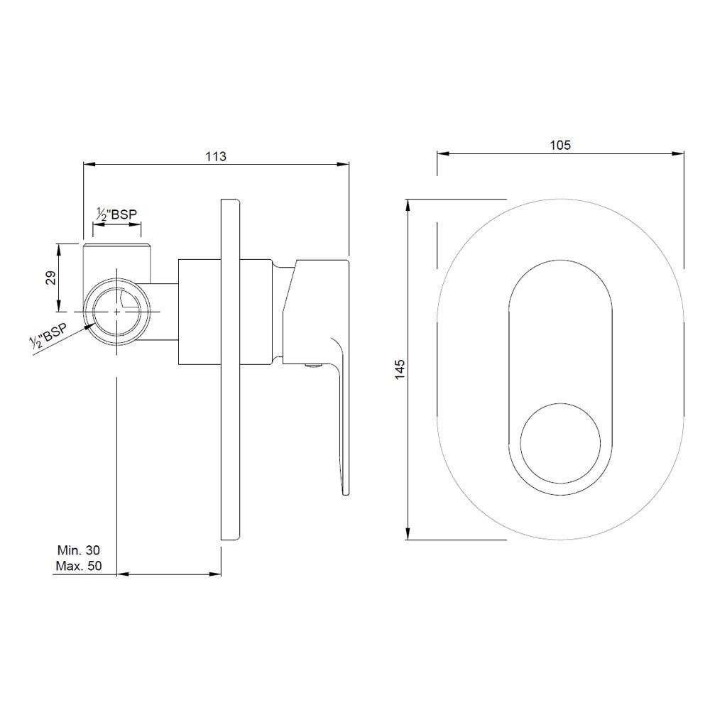 Single Lever Concealed Deusch Mixer with Provision for Connection to Overhead Shower only