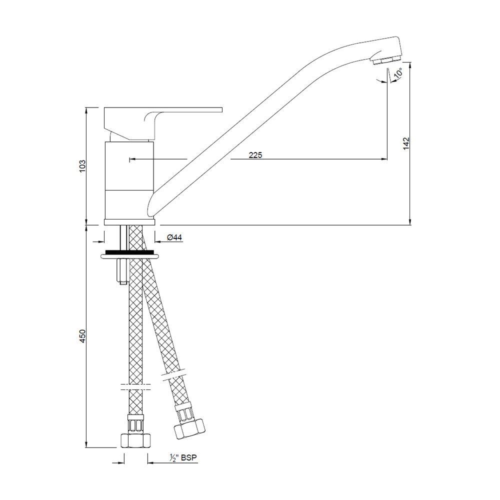 Single Lever Sink Mixer with Swinging Spout (Table Mounted) with 450mm Long Braided Hoses