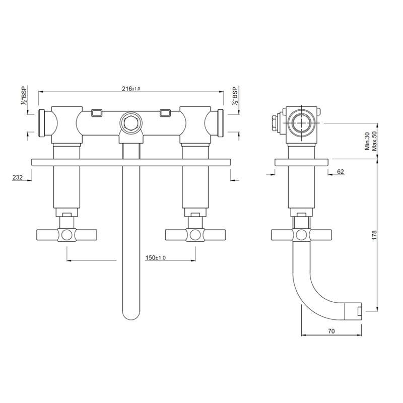 Two Concealed Stop Cocks with Basin Spout (Composite One Piece Body)