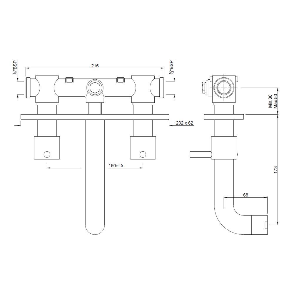 Two Concealed Stop Cocks with Bath Spout (Composite One Piece Body)