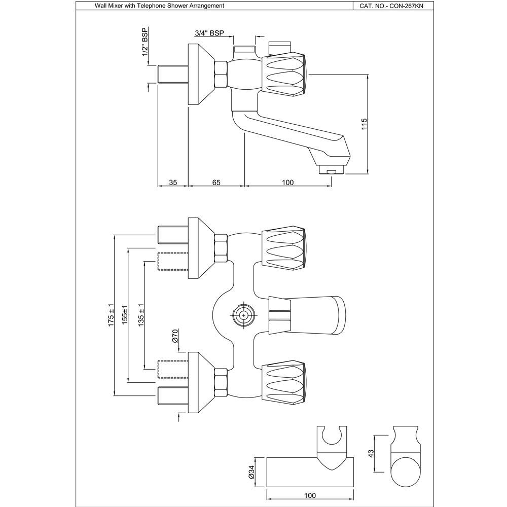 Wall Mixer with Hand Shower Arrangement with Connecting Legs, Wall Flanges & Wall Bracket for Hand Shower
