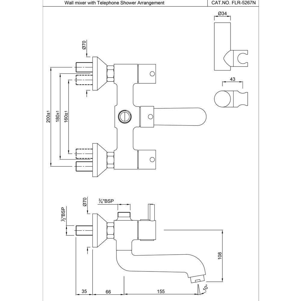 Wall Mixer with Connector for Hand Shower arrangement with Connecting Legs, Wall Flanges & Wall Bracket for Hand Shower